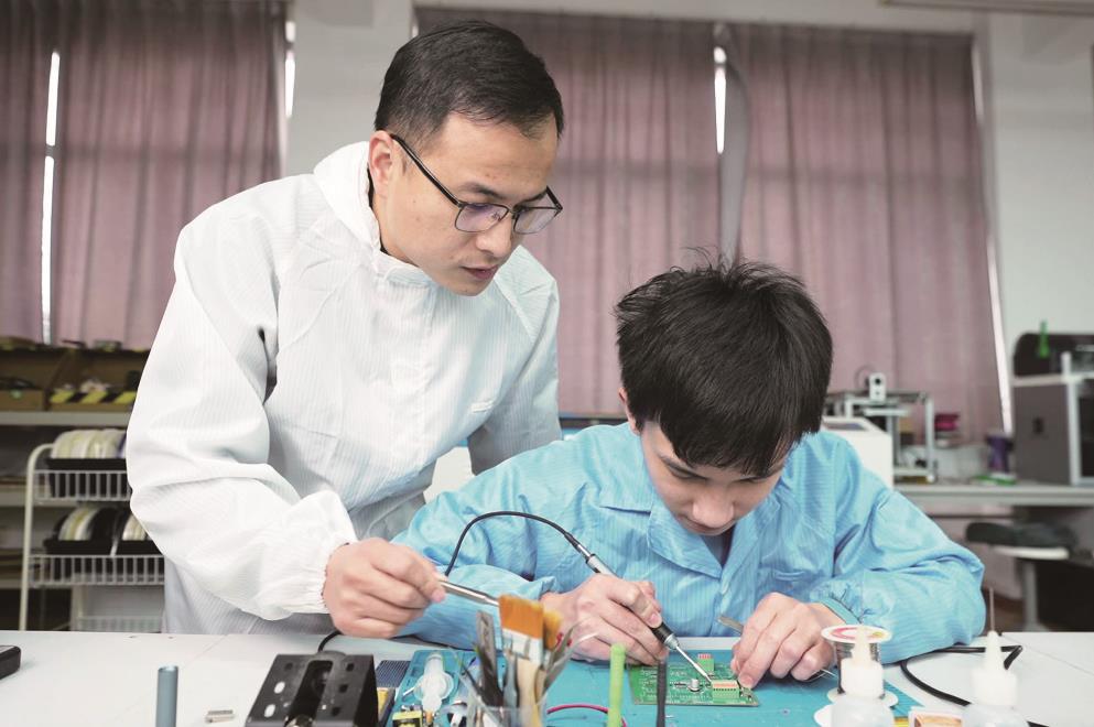 2019年起,为鼓励学生自主学习和探究,学校开辟专业教室、配置了3D打印机等专业设备,在校内设立学生工作室。慢慢地,杨春雷发现,许多学生自发到工作室里研究讨论,学习和动手氛围浓厚。