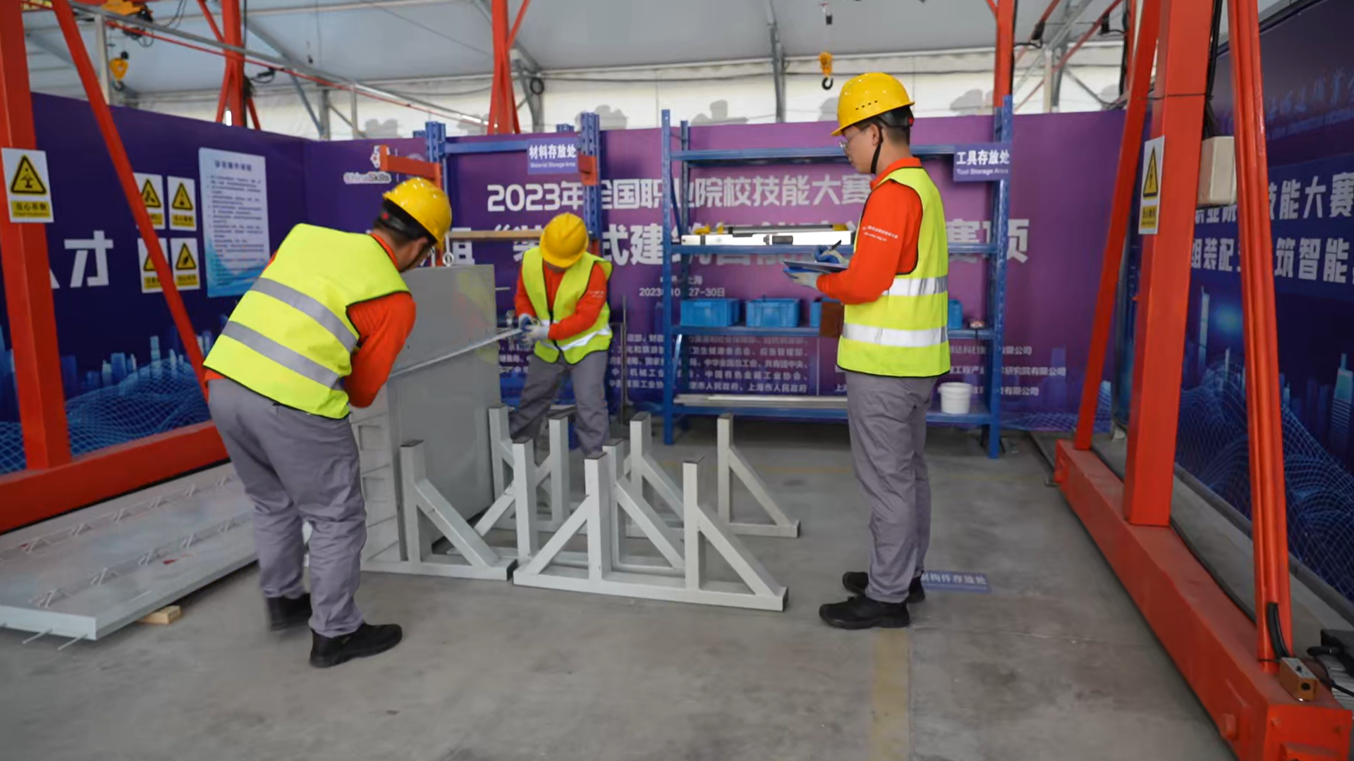 “装配式建筑智能建造”便是今年首次设立的新赛项。赛事要求参赛选手需在规定时间内,独立与合作完成包括信息化建模与方案编制、施工图识读与施工模拟、技能实操三个竞赛模块的任务,重点关注参赛选手的专业技术技能、创新能力、职业素养、团队协作能力等全面发展和可持续发展能力,助力高水平技术技能人才、能工巧匠的培养和选拔。
